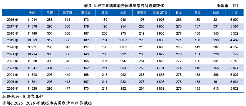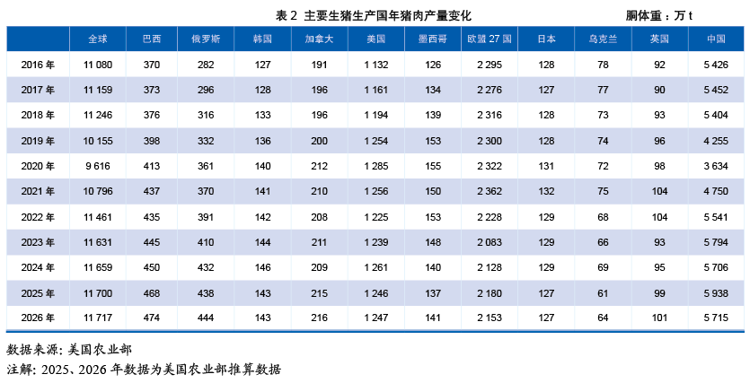 (3) Европейский Союз: продолжающееся снижение производственных мощностей. Под комплексным давлением ужесточения экологического законодательства, высоких производственных издержек и продолжающихся проблем с эпизоотиями, свиноводческая отрасль ЕС была вынуждена сократиться. Конкретные данные показывают, что поголовье свиней в 27 странах ЕС значительно снизилось со 142,65 млн голов в 2016 году до 128,5 млн голов в 2025 году, а объем производства свинины за тот же период упал с 22,95 млн тонн до 21,8 млн тонн.